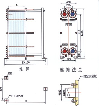板片角孔尺寸Port dim 100mm